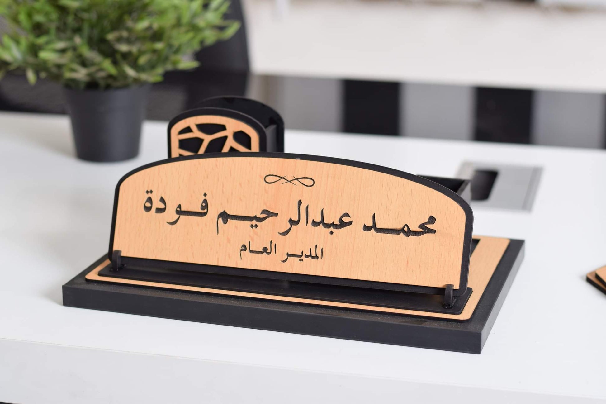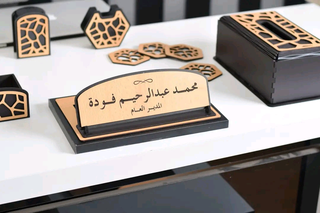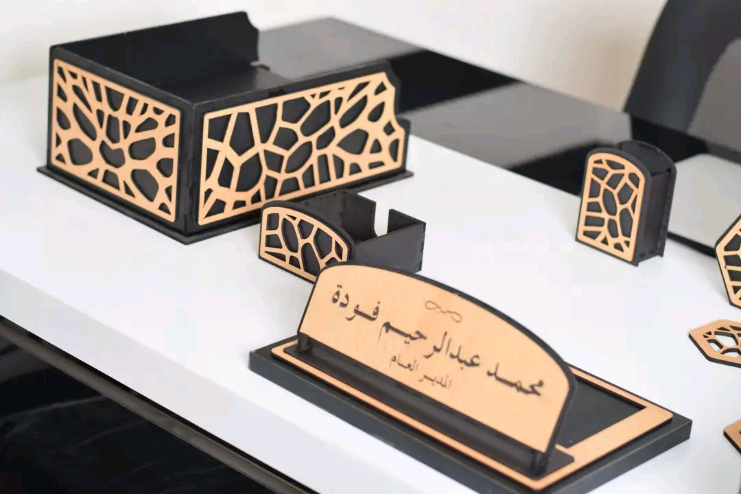 - قاعدة خشب طبيعي يوضع عليها الاوفيس نيم والمقلمة
