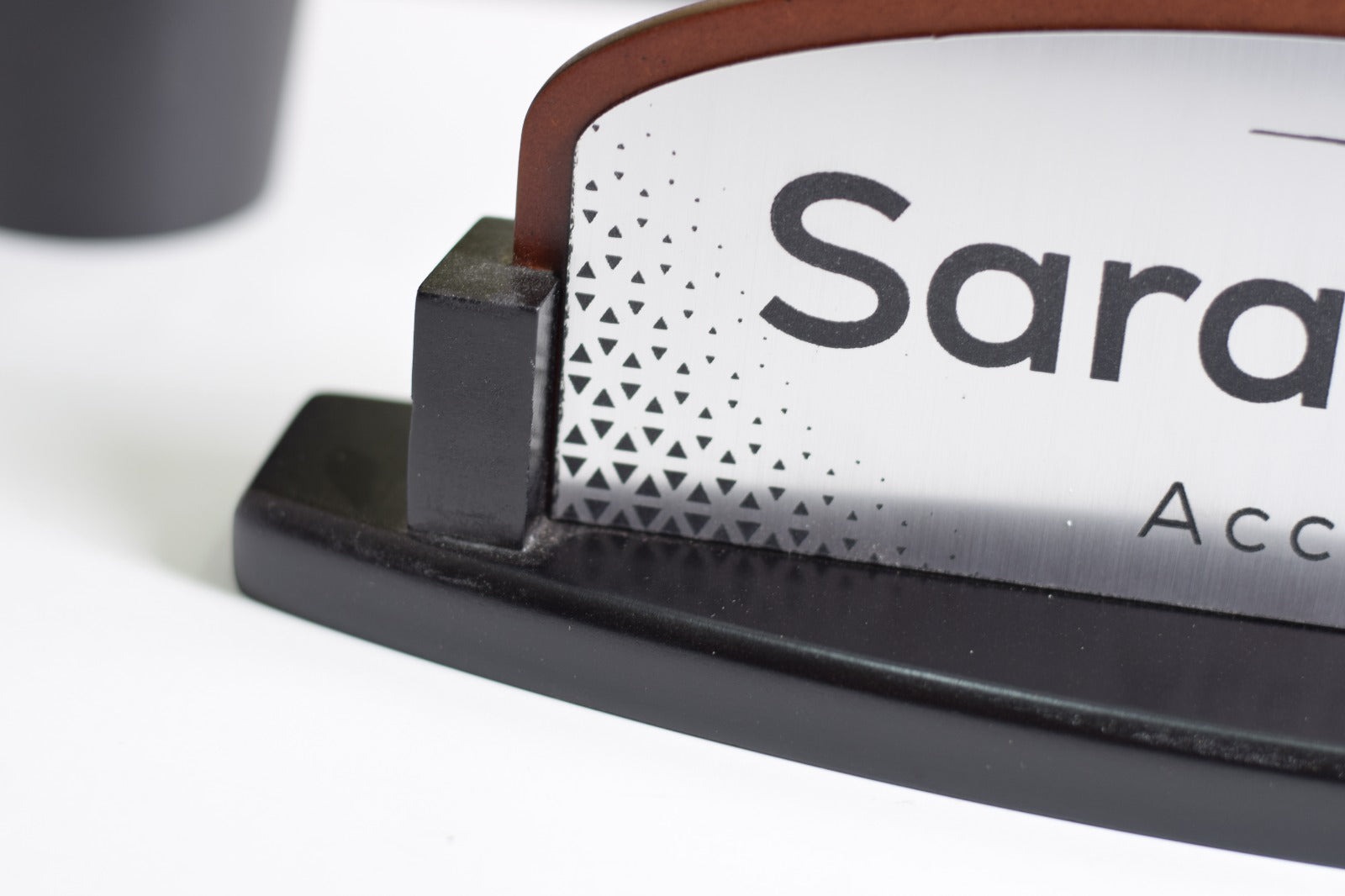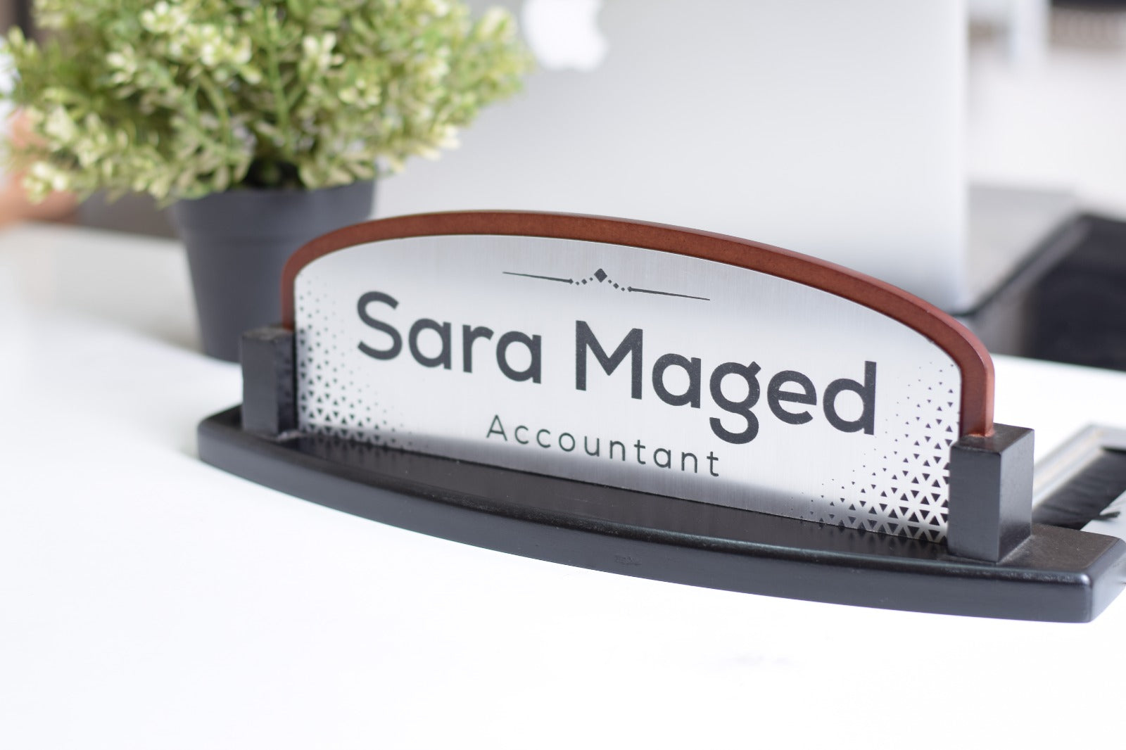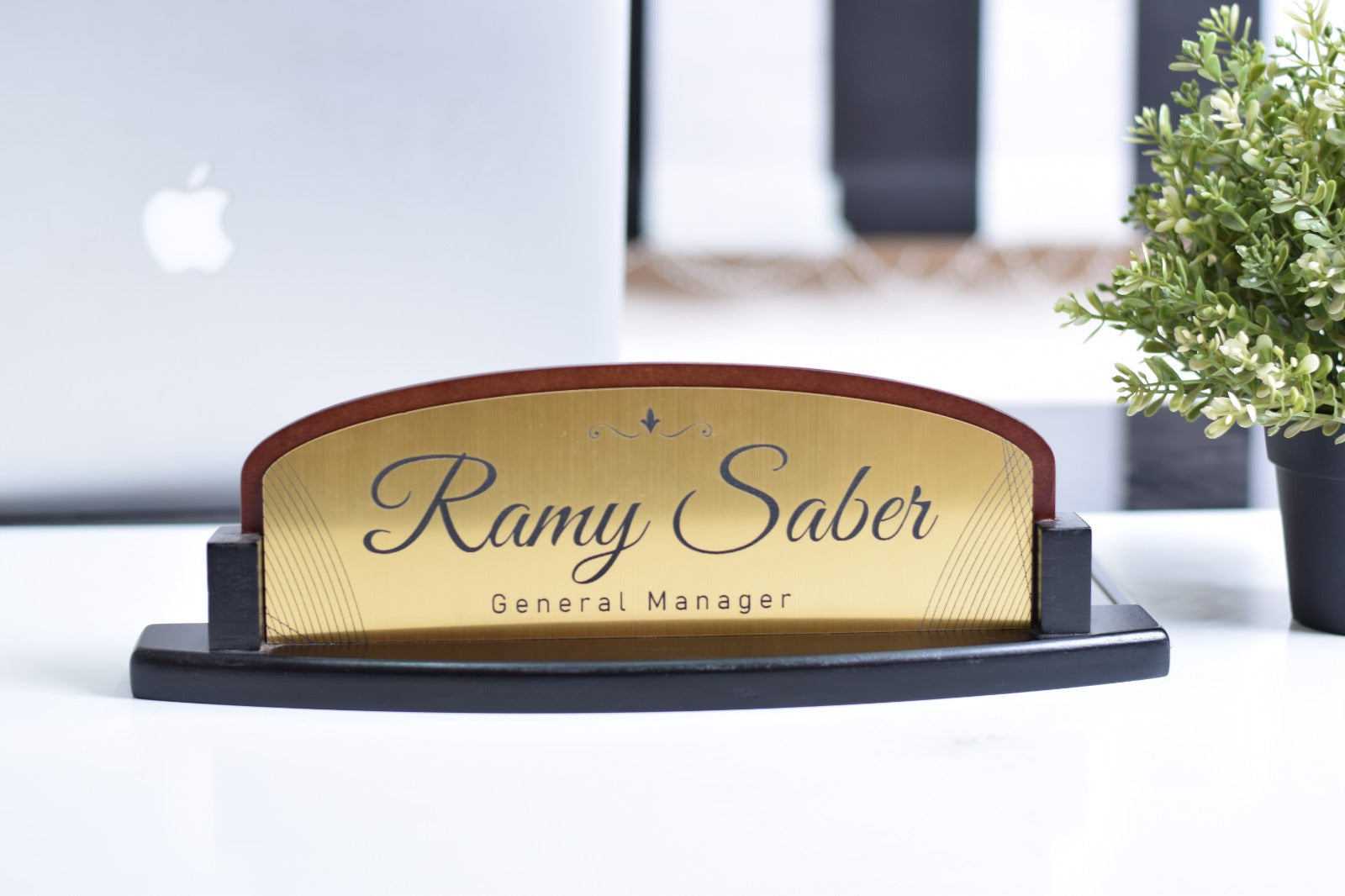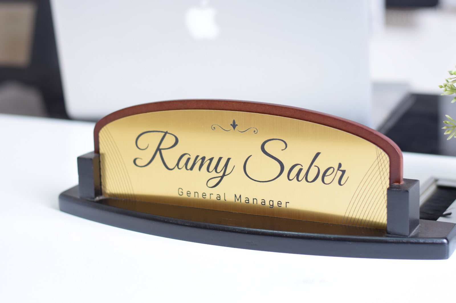 اسود في دهبي محفور الاسم عليهم والوظيفة