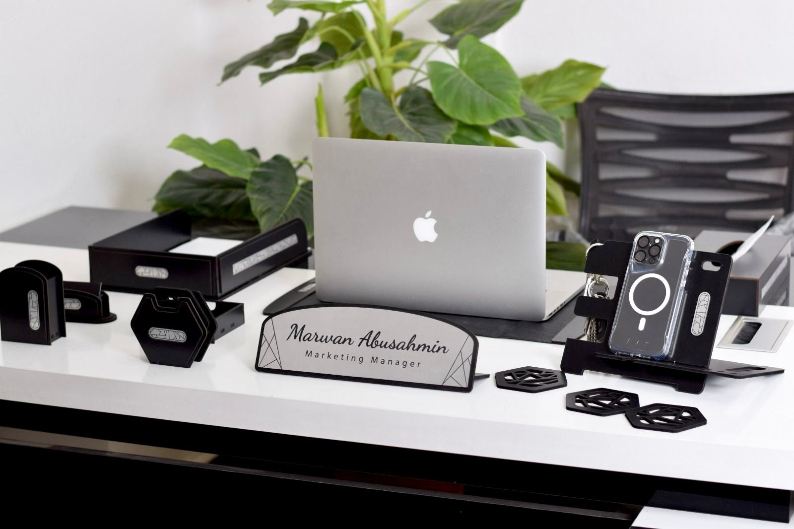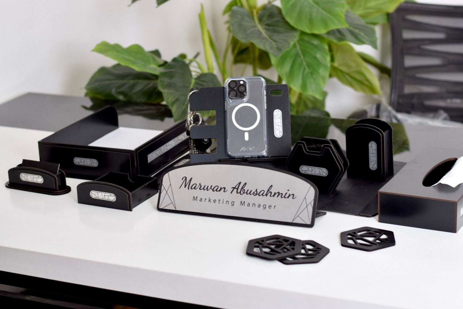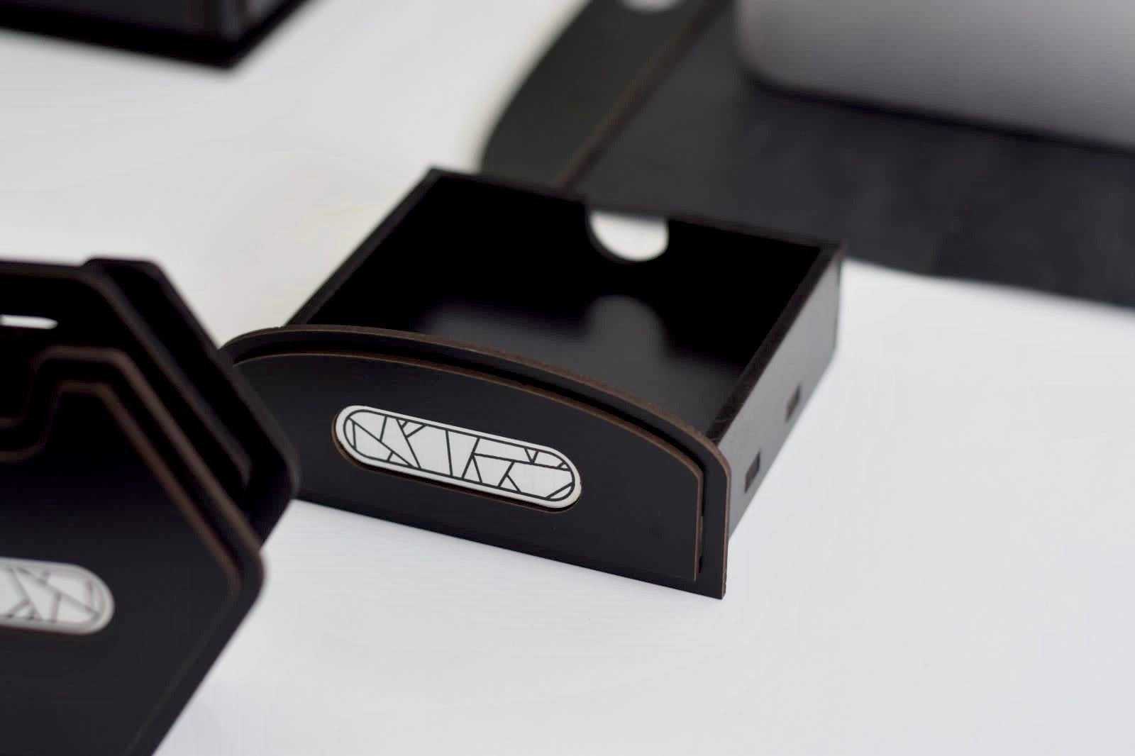 - قاعدة خشب طبيعي يوضع عليها الاوفيس نيم والمقلمة