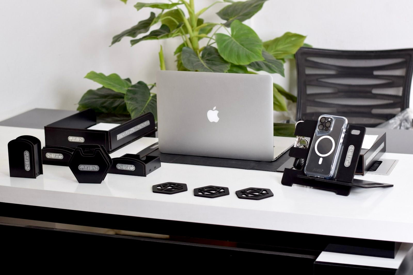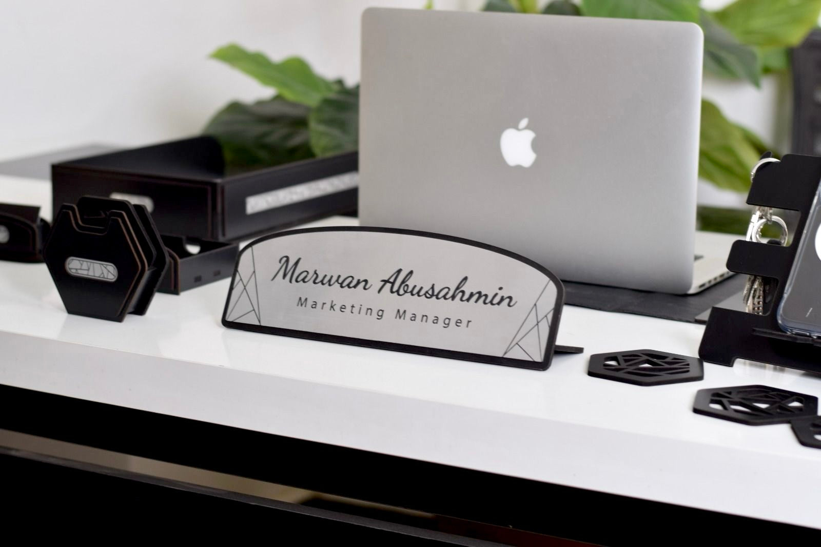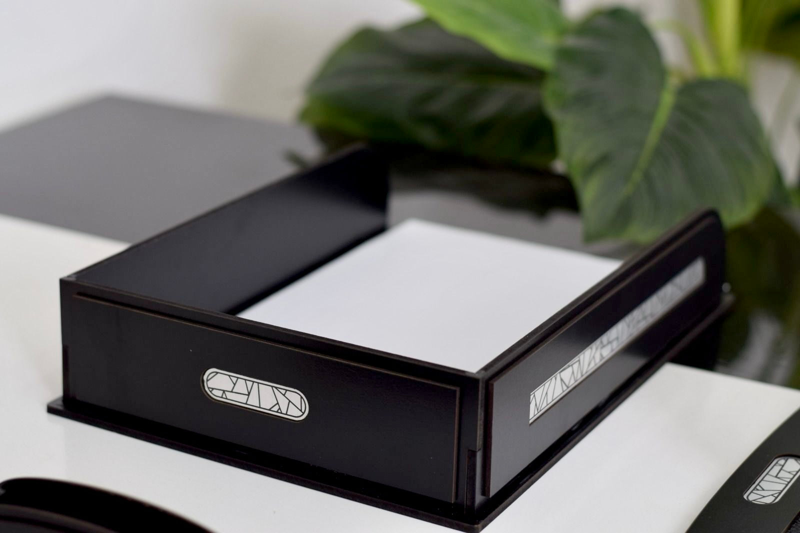 - قاعدة خشب طبيعي يوضع عليها الاوفيس نيم والمقلمة
