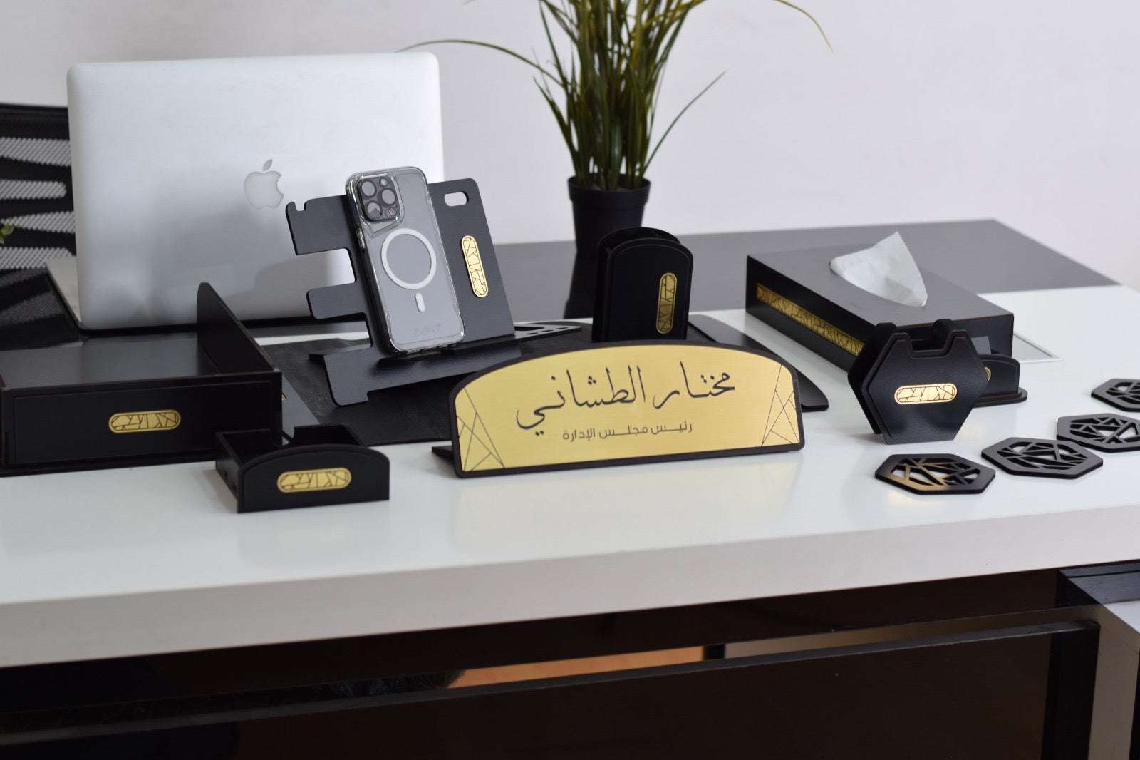 - قاعدة خشب طبيعي يوضع عليها الاوفيس نيم والمقلمة